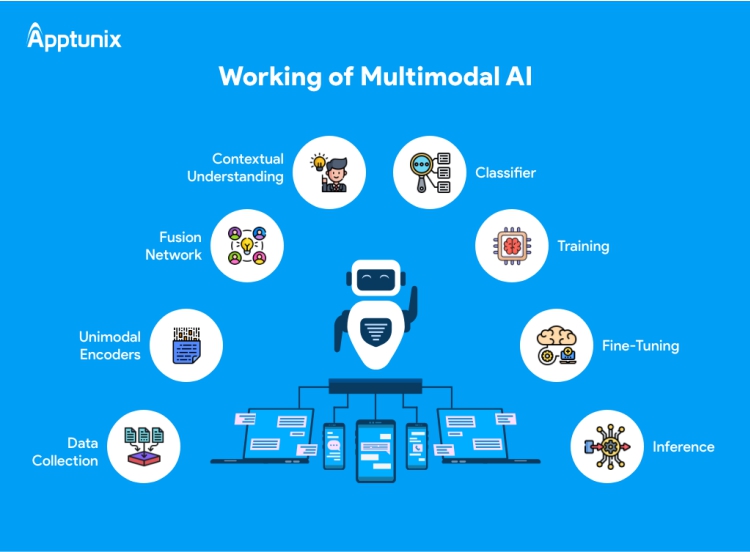 Proses kerja AI multimodal biasanya melalui beberapa tahap: