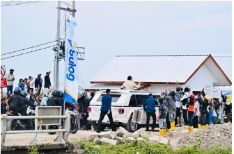 Sepanjang perjalanan menuju lokasi acara di Desa Kertamukti, Kecamatan Cilebar, ribuan warga terlihat memadati sisi jalan untuk menyaksikan langsung kedatangan Presiden Prabowo. Dari atas kendaraan, Presiden Prabowo menyapa warga dengan ramah, melambaikan tangan, dan beberapa kali menghentikan kendaraan untuk berinteraksi lebih dekat dengan masyarakat.